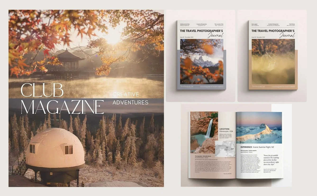 Join a global community inspired by travel, creativity, and meaningful adventures, with monthly magazines, creative challenges, and a supportive network of photographers around the world.